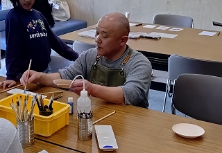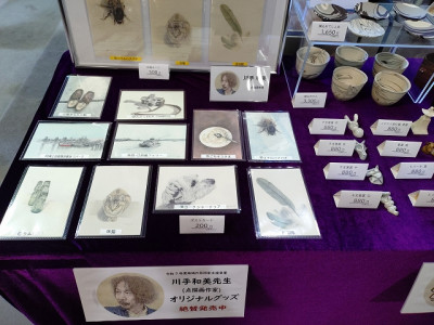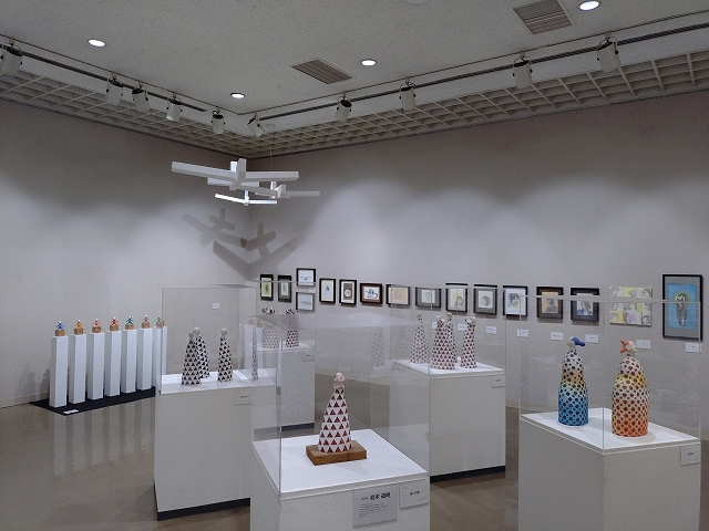 入館者調べにご協力ください。  初期作品(点描画作家・川手和美)  創作ノート(陶芸家・岩本道明)  イラストの仕事について(イラストレーター・おりでちせ)  会場風景(1)  会場風景(2) |
