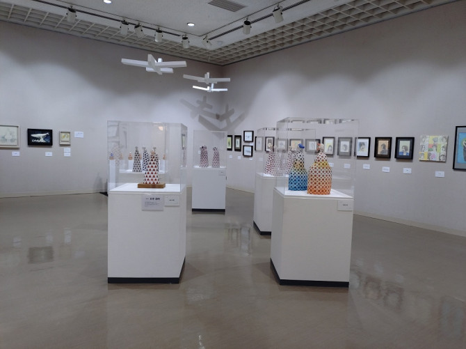 5回目となる本展では、呉市立美術館で美術入門教室の講師や、市内外で個展やグループ展で活躍している陶芸家・岩本道明、イラストレーター・おりでちせ、点描画作家・川手和美、3人の作家の作品や活動などを紹介します。