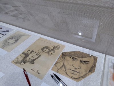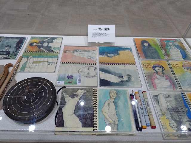その他、各先生方の創作ノート、画材なども展示しており、3人それぞれの独創性あふれる作品とともにお楽しみください。